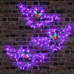 National Tree Company Halloween Lighted Sign Decoration, White, Bat, LED Lights, Plug In, 23 Inches