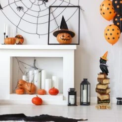 National Tree Company Halloween Tabletop Decoration, Black, Black Cat With Pumpkin Stack, 32 Inches
