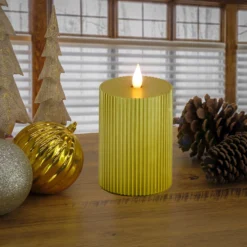 National Tree Company 4×10 HGTV Home Collection Flameless Georgetown Pillar Candle, Gold