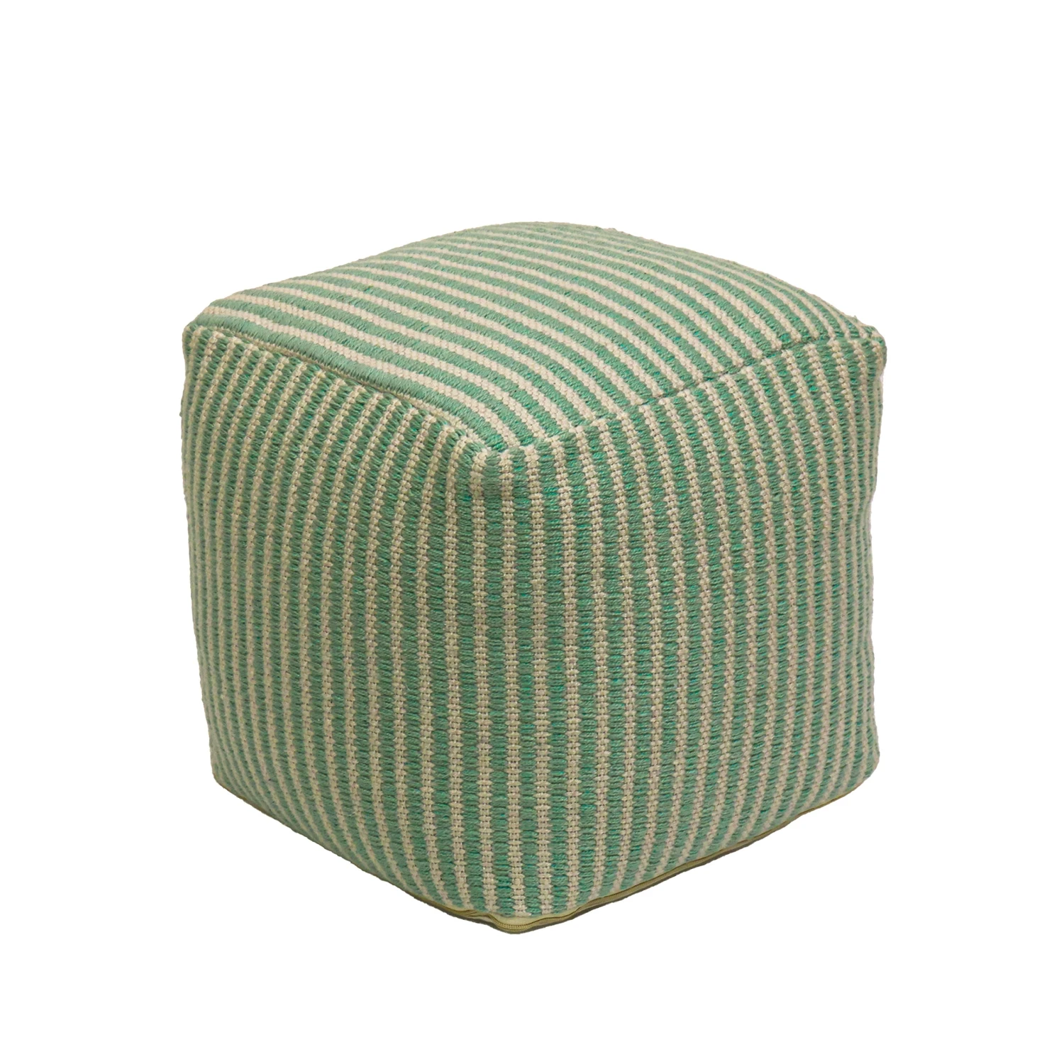 Convenient, comfortable, and stylish, this pouf ottoman is a multipurpose furniture piece offering uses as a portable seat, footrest, or tabletop. Soft yet solid, it is constructed with a polystyrene bean fill and features a strong hand-woven sustainable polyester cover designed to endure outdoor environments. Dress up an interior or exterior space with this versatile pouf featuring a striped pattern in sea mist color, an accent piece that offers both form and function.