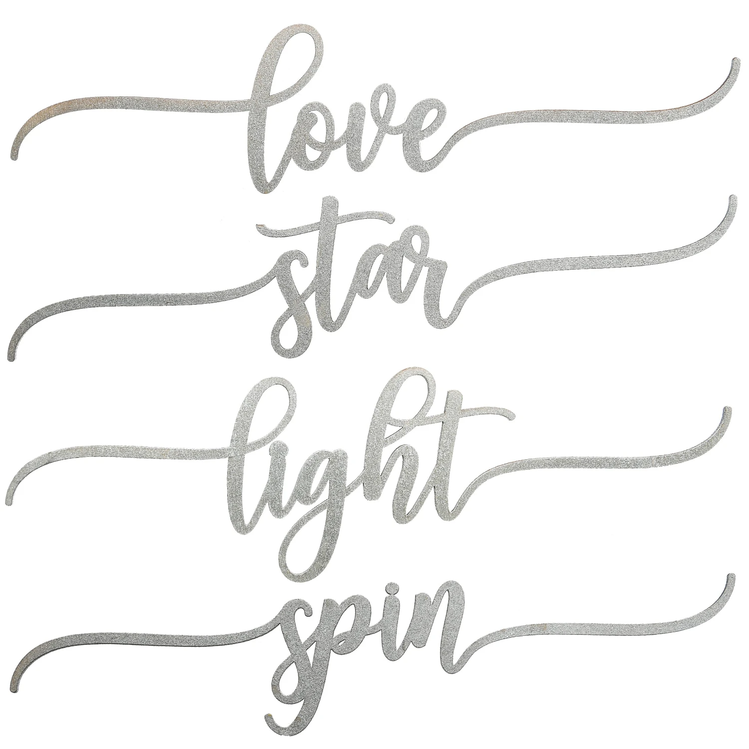 - These fantastically festive decorative place settings features “love”, “star”, “light” and “spin” in shiny silver curly script lettering