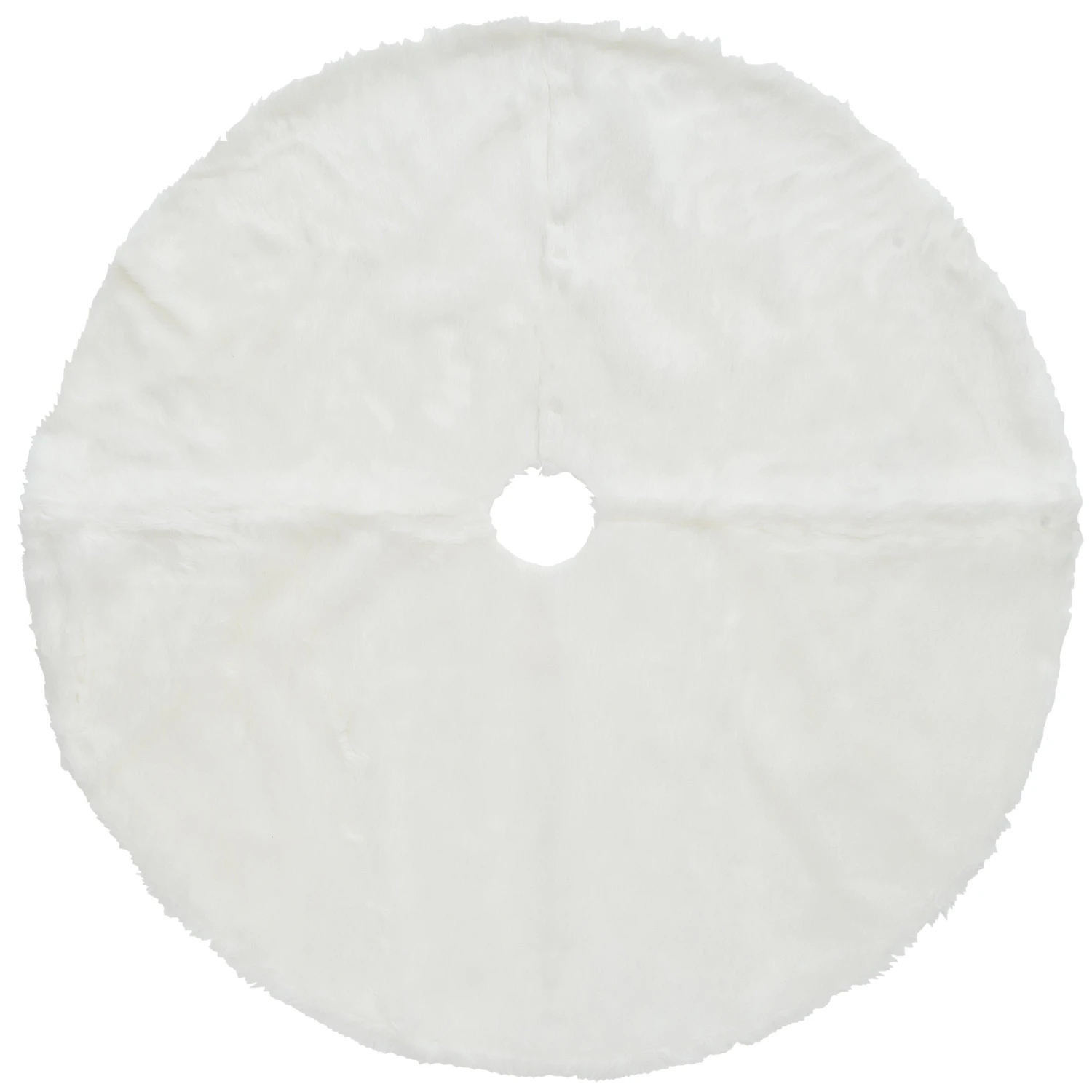 Add the finishing touch by surrounding the base of your Christmas centerpiece with this bright white tree skirt. Made of 100% polyester, this skirt features a soft and appealing feel provided by its faux fur fabric design. The split seam opening allows for easy placement with Velcro tabs included to close and secure the seam.