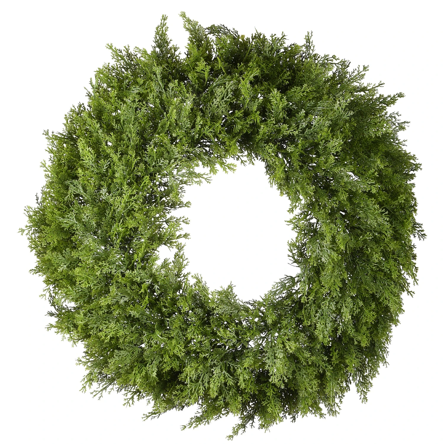 - This fantastically festive wreath features green arborvitae branches swirling around a base, perfect for adding a touch of rustic greenery