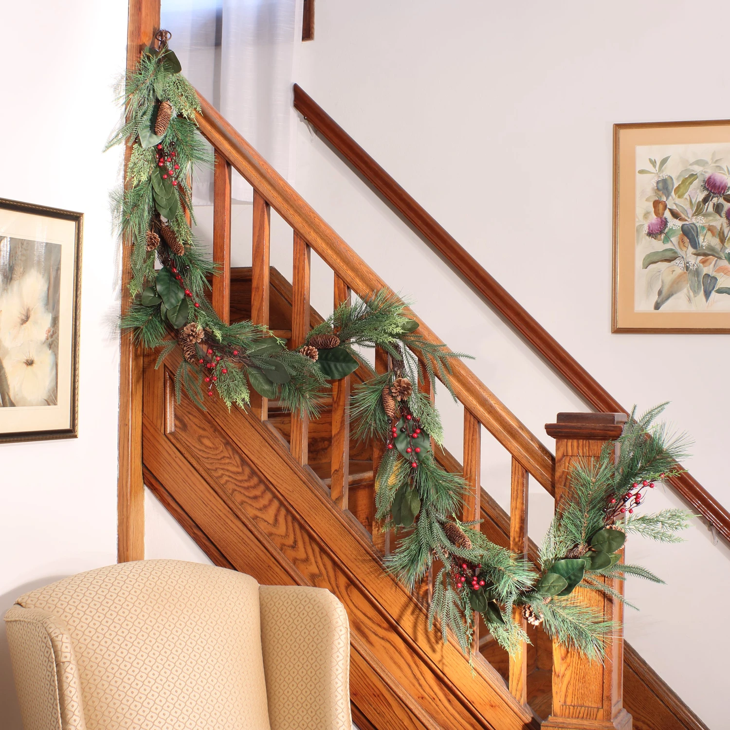 - Designed to be suitable for indoor and covered outdoor locations, place this artificial garland over a mantle, door, or window or wrap around a porch fence or stair bannister