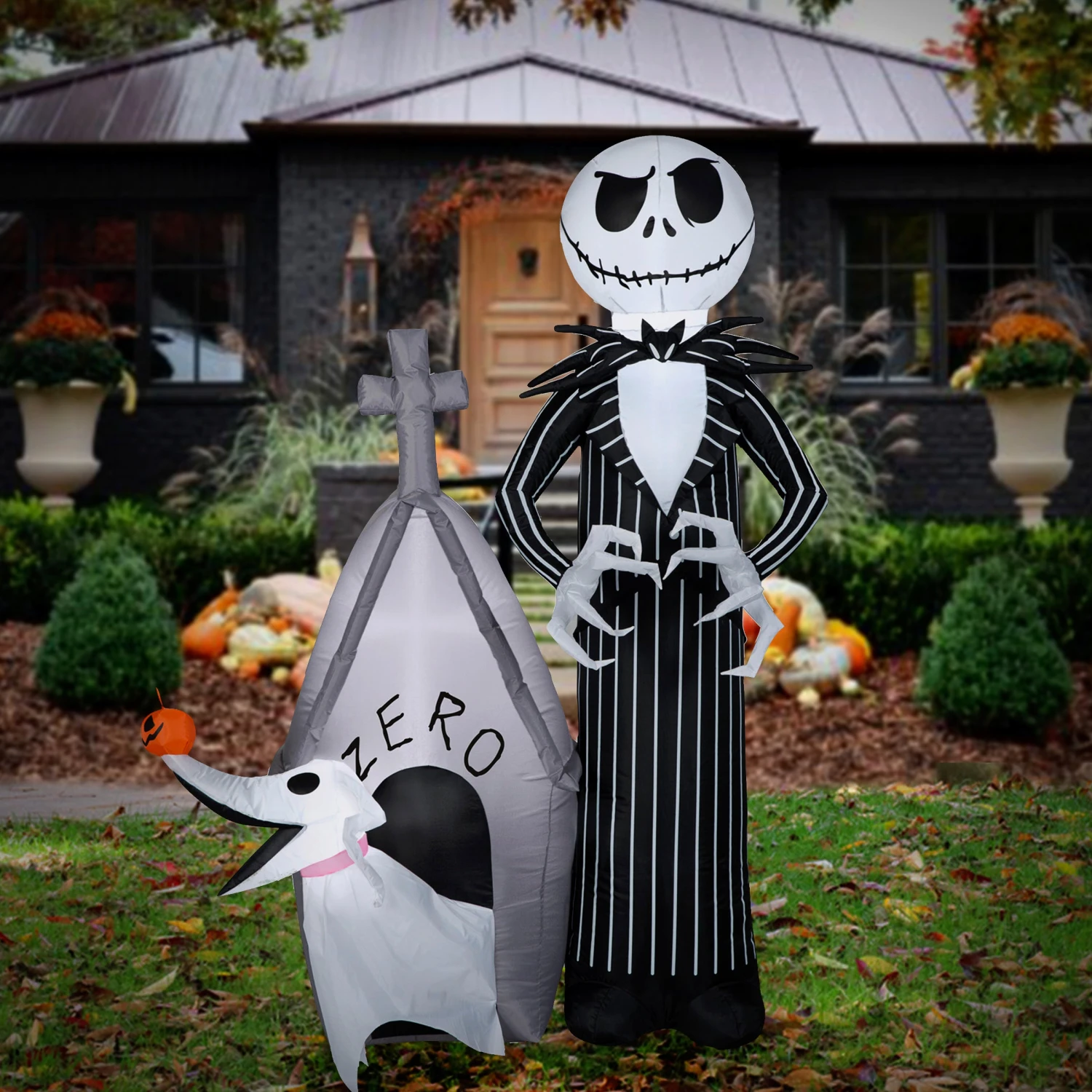 Entertain neighbors and guests with this light-up Airblown® inflatable decoration. Featuring one of the stars of Tim Burton’s movie “Nightmare Before Christmas”, Jack stands with a menacing glare while Zero his pet ghost dog floats from his doghouse. Thes