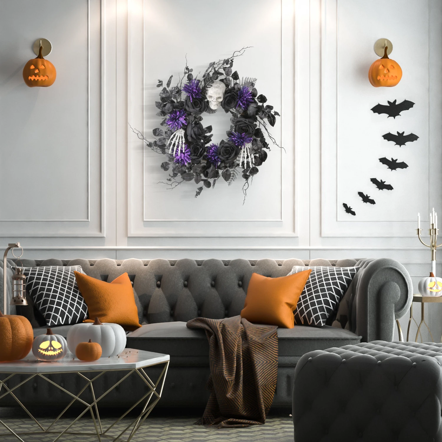 - Designed and decorated to look and feel lifelike, this 24 inch artificial wreath is the perfect complement to any Halloween-themed arrangement.
