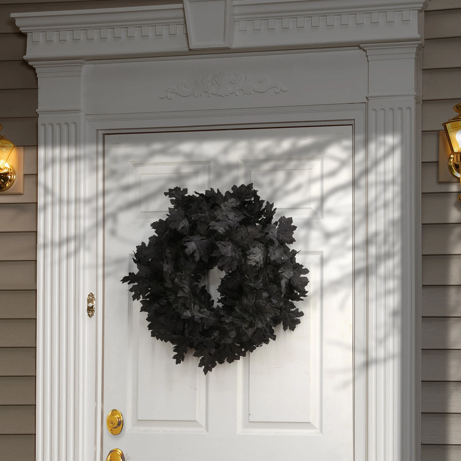 Scare kids and parents alike with National Tree Company’s Artificial Black Oak Leaves Wreath. This spooky 28 inch wreath is designed with a woven black branch base and is decorated with clusters of black oak leaves. This spooky wreath is built with high q