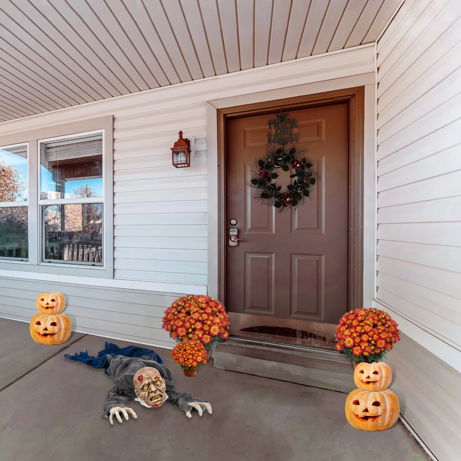 - Place this spectacularly spooky decoration in an indoor location or covered porch to greet guests, scare Trick or Treaters and add a scary ambience to any Halloween decorative assortment