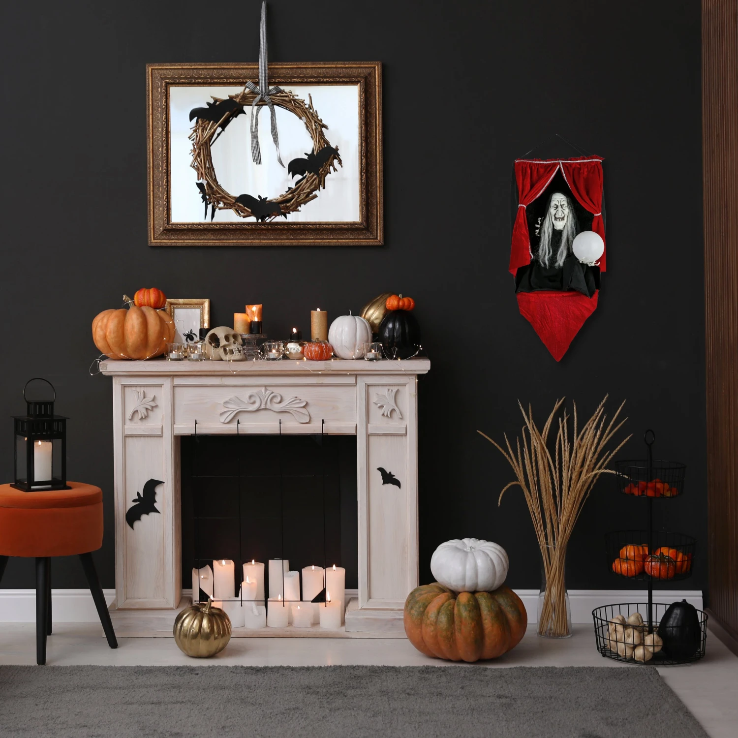 - Place this spectacularly spooky decoration in an indoor location or covered porch to greet guests, scare Trick or Treaters and add a scary ambience to any Halloween decorative assortment