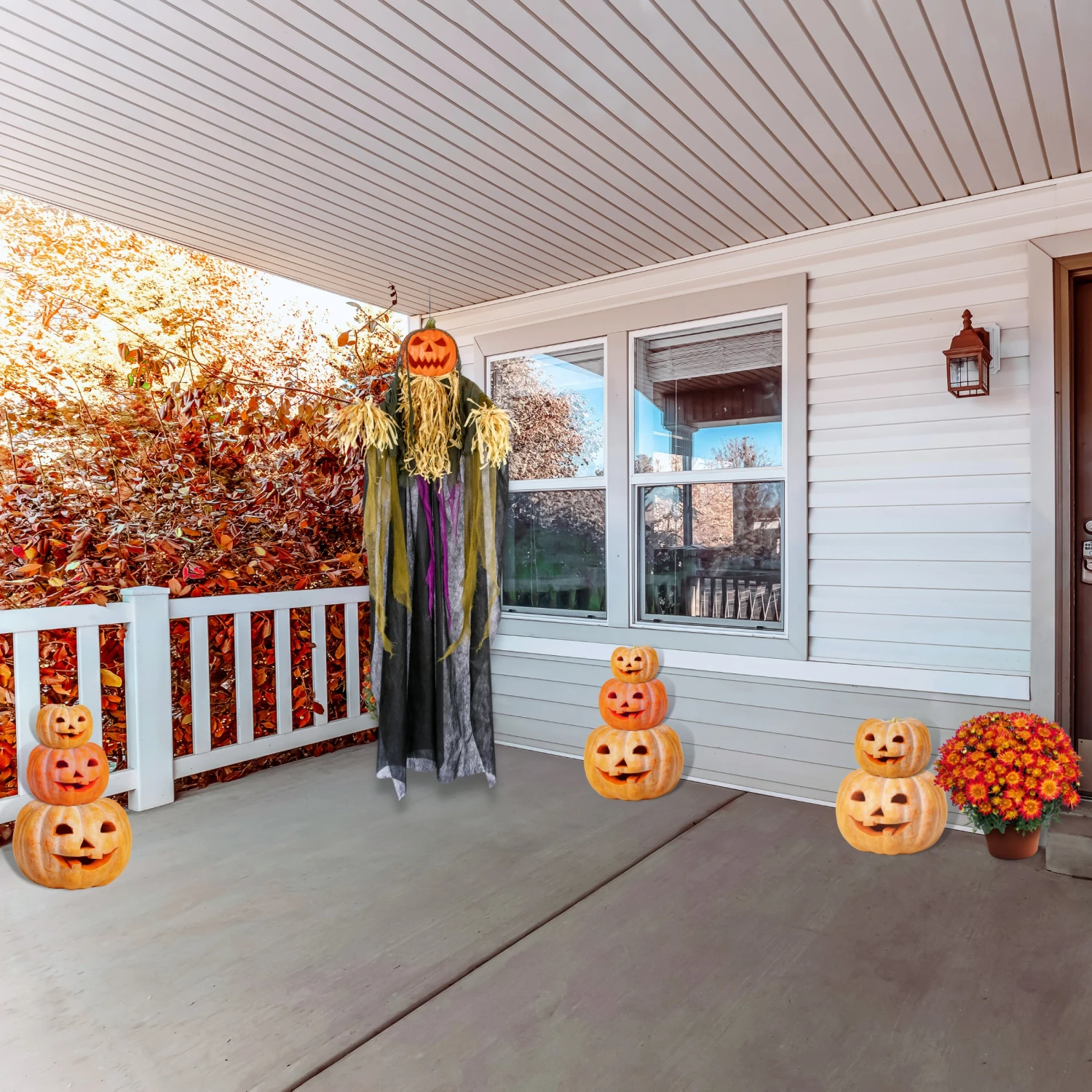 - Includes one Pre Lit Animated Hanging Scarecrow that measures 51 inches in length, 8 inches in width and 72 inches in height and is powered by 3 AA batteries (not included)