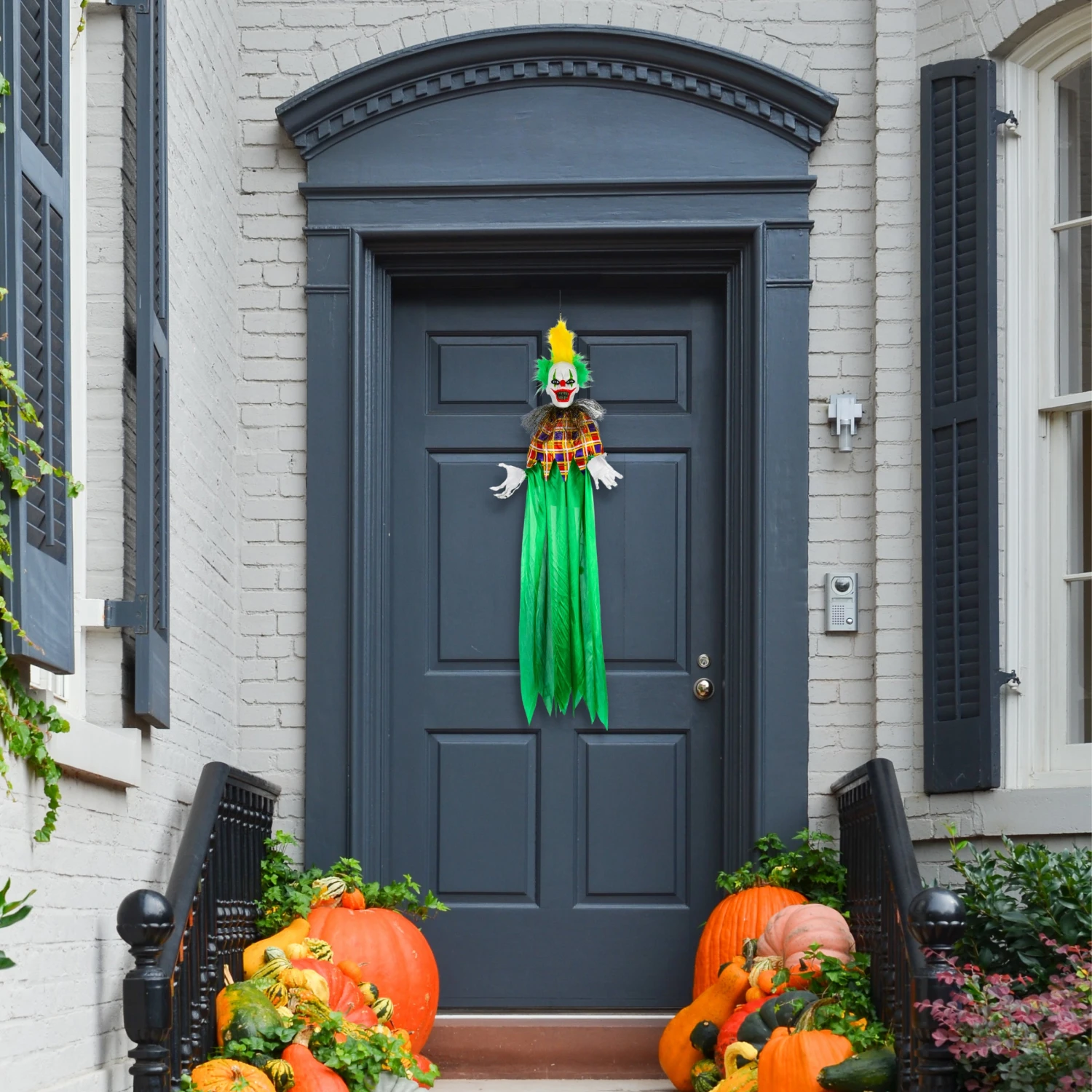 Enchant and entertain your family and friends with National Tree Company’s Pre Lit Animated Scary Hanging Clown. This scary decoration features moving parts, sounds and LED lights all activated by a sound sensor, perfect for scaring approaching Trick or T