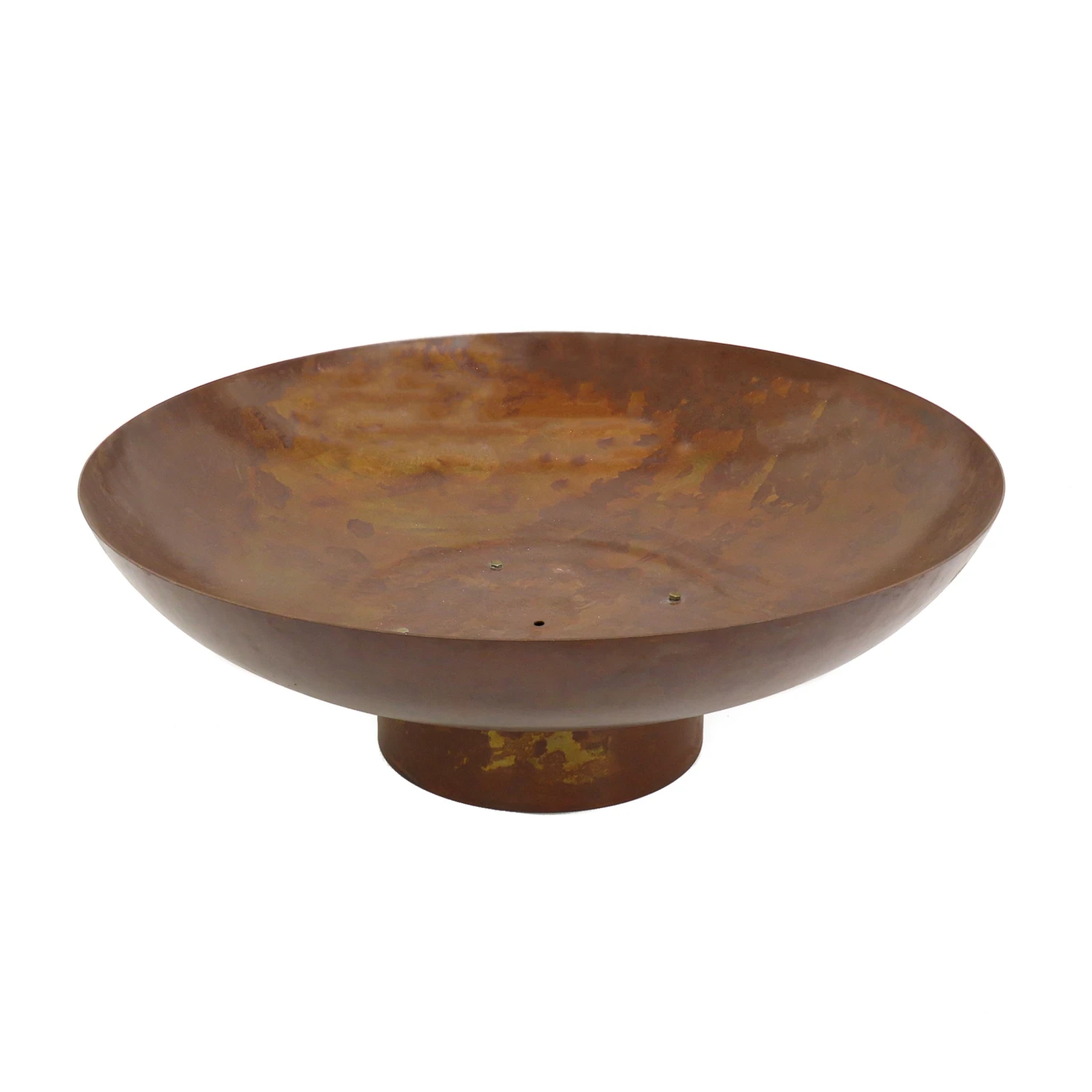 - Constructed with strong cast iron, this fire pit features a bowl painted in a heat resistant rust finish, deep enough for a great fire, as well as a convenient base to raise the fire above ground level