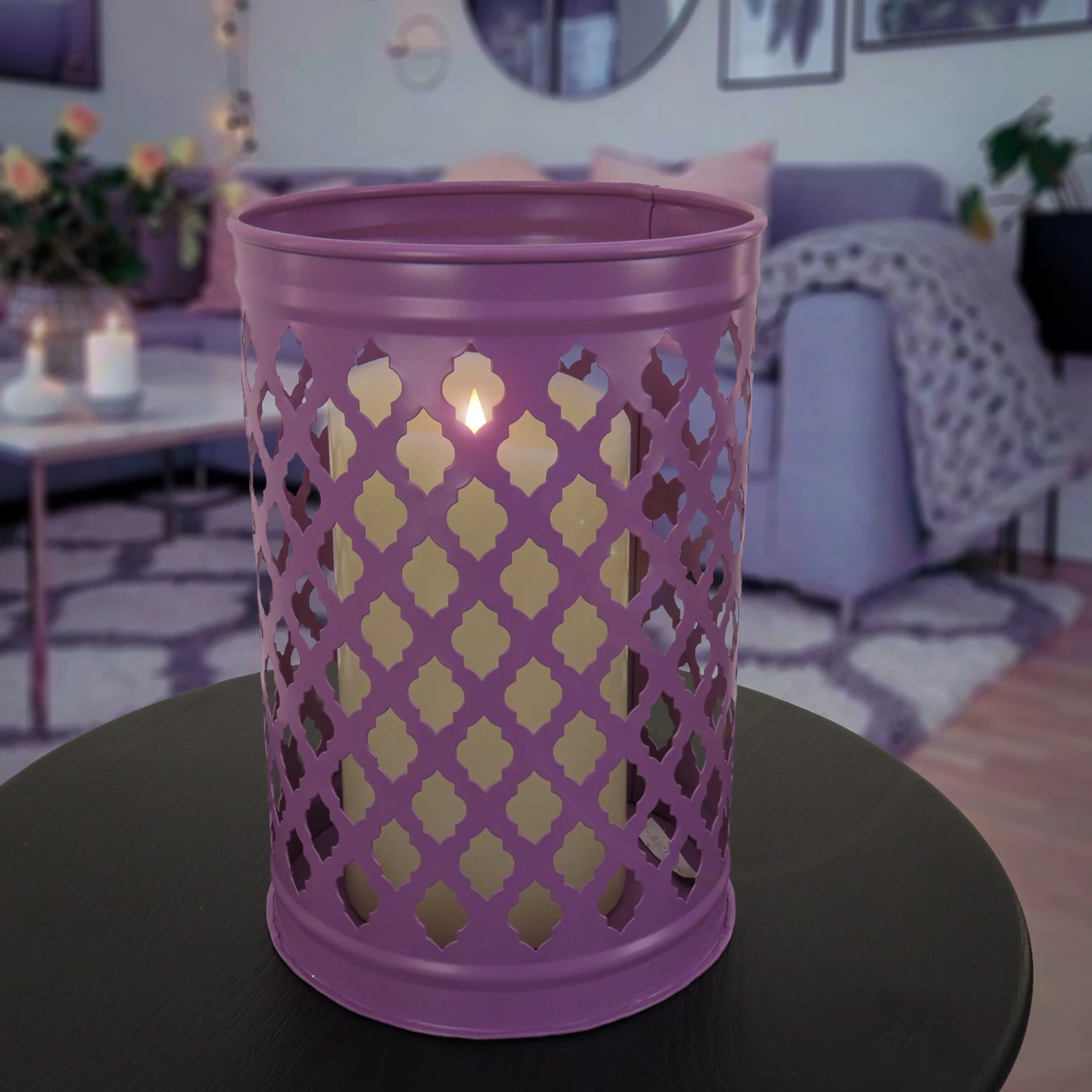 Transform your home and backyard living space with National Outdoor Living’s Lantern Candleholder. Designed with galvanized steel and painted with a dusty lavender finish, this candleholder fits a single pillar candle up to 6 inches in diameter. This decorative piece features an ornate diamond shape pattern allowing diffused candlelight to shine through. Built with sturdy, weather durable materials, this decorative furniture piece is perfect for your next indoor or outdoor gathering, designed to entertain for years to come. At National Outdoor Living, we pride ourselves on the quality and craftsmanship of our decor. This spring and summer, transform your home and outdoor area with our wide range of furniture sets, decorative accents and more to create the backyard of your dreams. Includes one lantern candleholder that measures 12 inches in height and 8 inches in diameter.