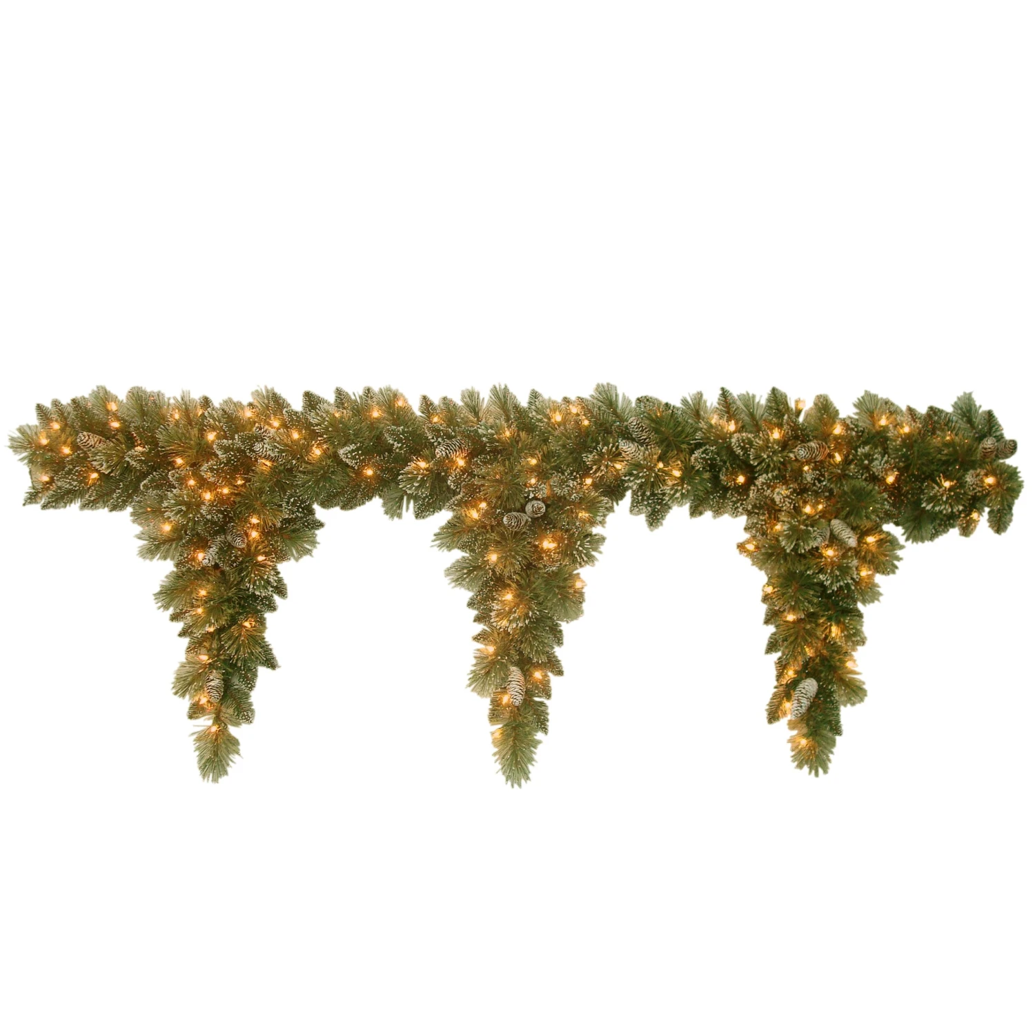 Transform your home for the winter holidays with National Tree Company’s Pre-Lit Artificial Christmas Garland. Designed with a Glittery Bristle Pine branch base, this garland is 6 feet long and decorated with pine cones. These beautifully ornate decorations complement the garlanda???s natural looking branches. Made to look and feel lifelike, the stunning realism of the tree is defined by its close attention to detail, featuring tens of individually crafted branch tips that create a full bodied garland. This fantastically festive garland is strung with white UL lights prior to packaging for a more convenient setup. The lights operate individually, so if the bulb lens has not been cracked or broken, the light set will continue to illuminate except for any individual bulbs that are not working. To power the lights, simply plug them into the nearest outlet and let the pre strung lights illuminate your home with the warmth and cheer of the holiday season. Hang this decorative garland over any door, window or mantle to bring a Christmas ambience into any room or covered porch. Constructed with sturdy, high quality materials and hypo-allergenic, fire-resistant needles, this tree is built to bring holiday cheer for years to come. This hanging decoration is suitable for both indoor and covered outdoor use. At National Tree Company, we strive to create high quality Christmas decorations to help you transform your home so you can keep making every holiday moment magical.