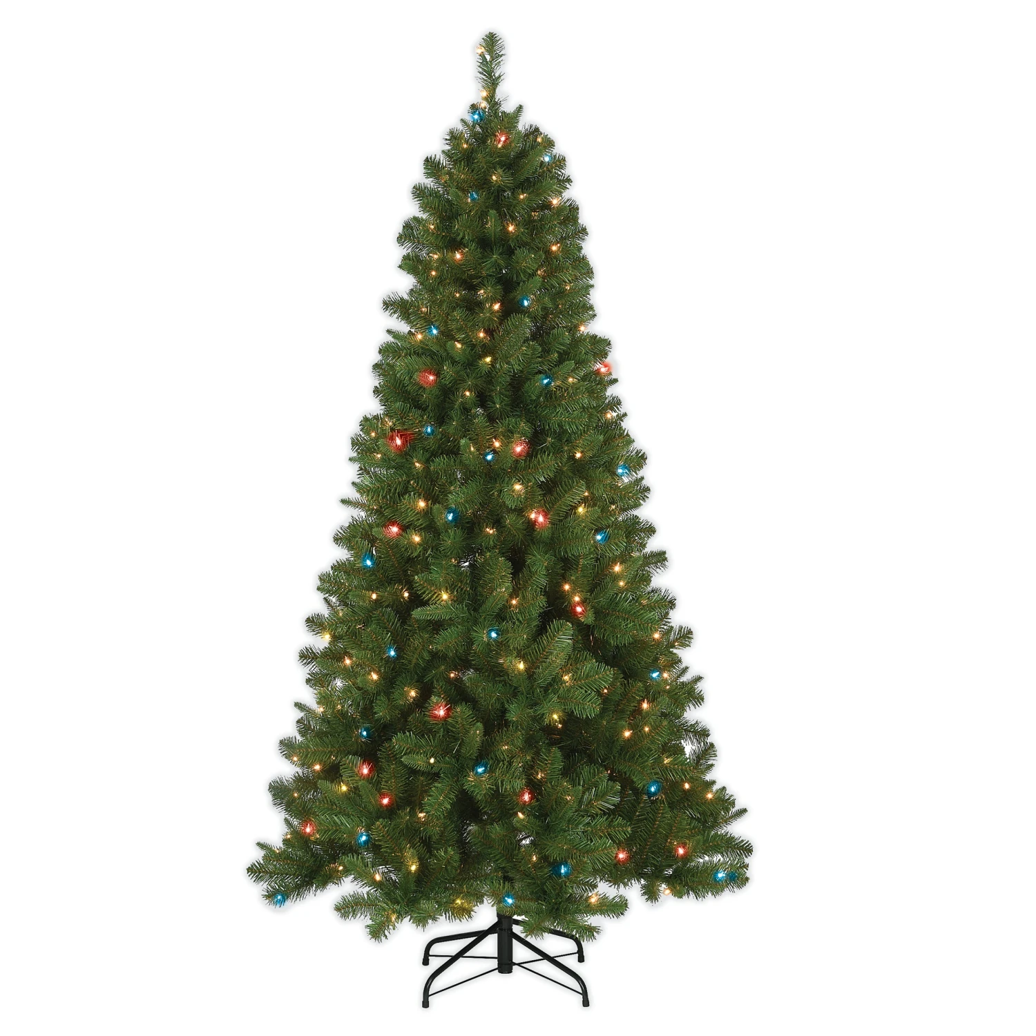 - Includes one Gteen Mixed Pine with Multicolor Lights artificial tree pre-strung with 400 Multi colored Incandescent lights – to power the lights, simply plug in to the nearest wall outlet