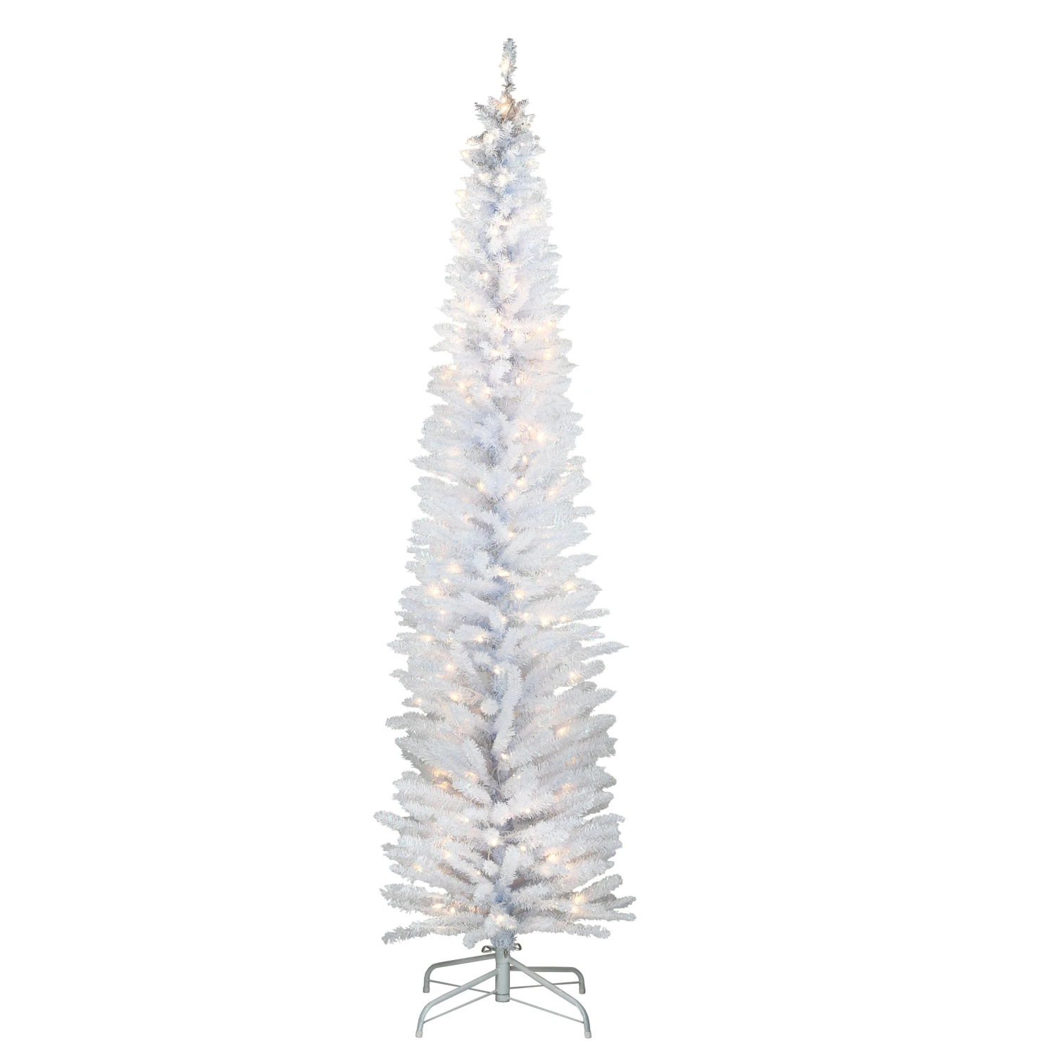 - This Tinsel Pre-Lit Artificial White Christmas Tree is 7 feet tall with a 24 inch base diameter. Featuring hundreds of individually crafted branch tips to create full bodied branches, this tree is designed to look and feel lifelike.