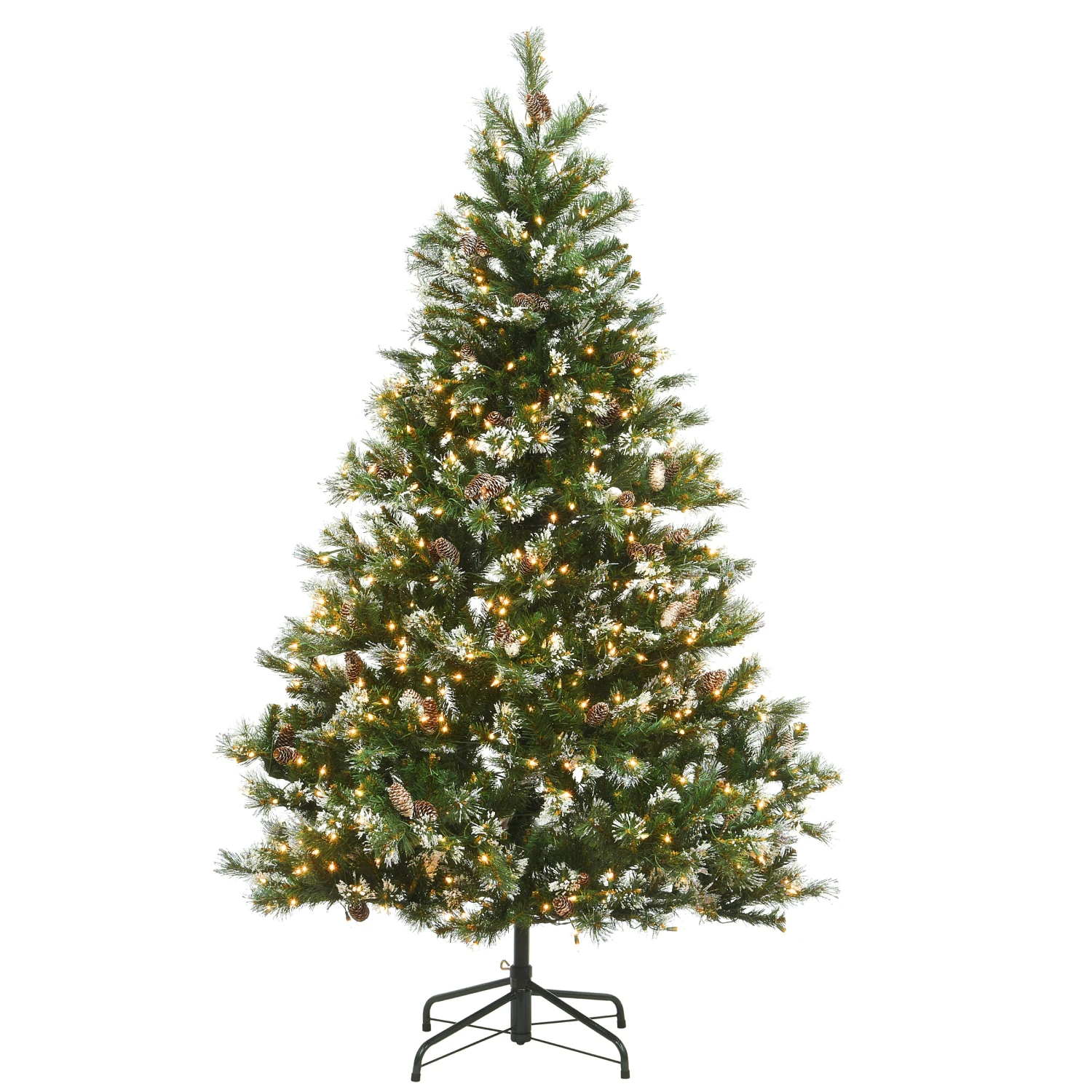 - This Glittery Bristle Pine Artificial Green Christmas Tree is 6.5 feet tall with a 52 inch base diameter. Featuring hundreds of individually crafted branch tips to create full bodied branches, this tree is designed to look and feel lifelike.